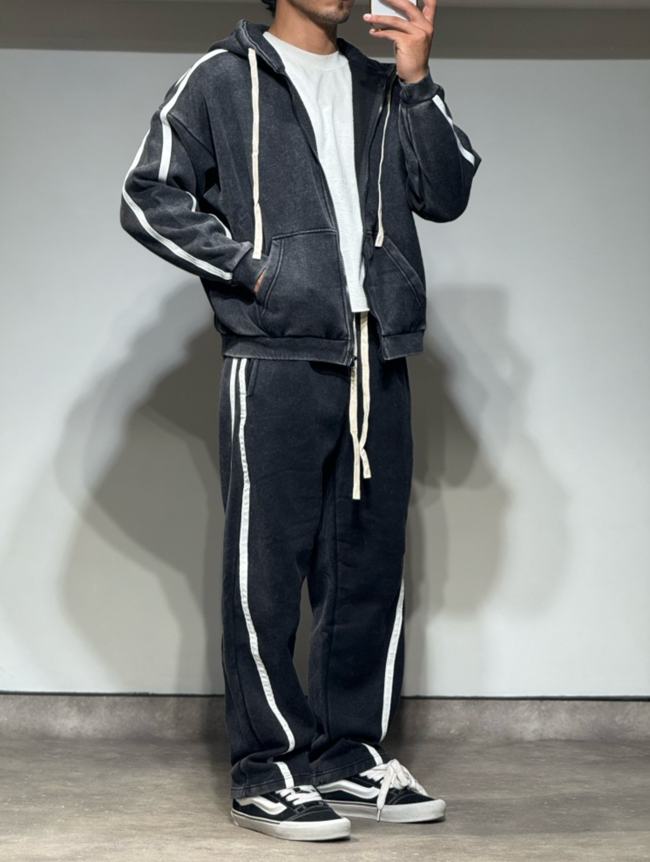 Découvrez cet ensemble en jeans façon délavé, alliant style et confort optimal. La veste et le pantalon sont soulignés par une bande blanche latérale, apportant une touche moderne et tendance à votre tenue. Conçu pour un port agréable toute la journée, cet ensemble est parfait pour affirmer votre look décontracté avec élégance.
